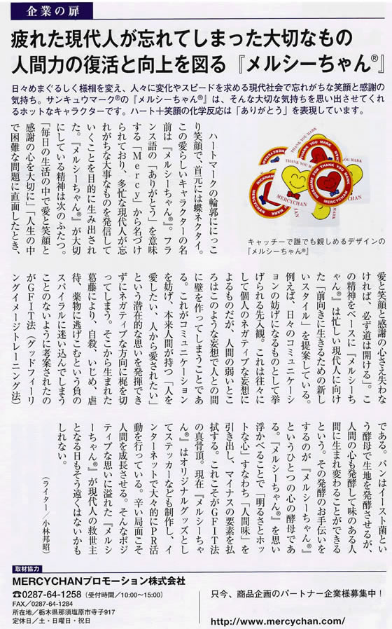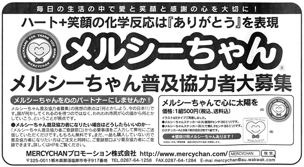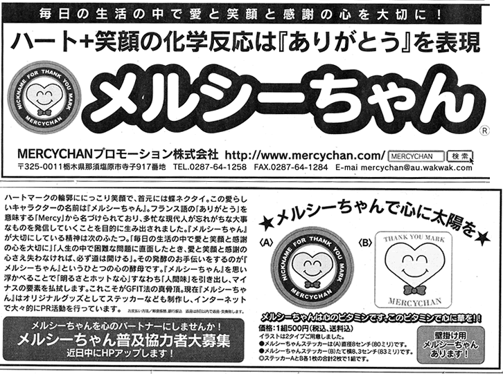 Copyright ©Harunobu Kodama & MERCYCHAN promotion co,Ltd all right reserved. All right reserved. 当社に承諾なく無断で、当社ホームページに掲載されている文章・画像などのコピーや転載を禁止します。 |