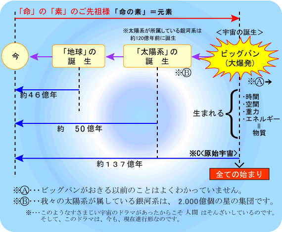 ※ビッグバンは宇宙創造の有力な諸説の一つです。