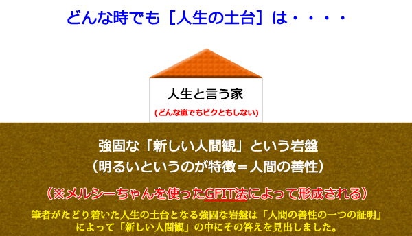 人間ゴロゴロしていても死ぬ、遊びほうけていても死ぬ、飲んだくれていても死ぬ。ならば何かに燃えて死のうじゃないか!! 魂のリフォームとは何か? それはずばり「ただの石ころがダイヤモンド魂を持った石ころになること」です。突然こんなことを言われてもおそらくピンとこないし、そんなことはあり得ないと思っていることと思います。しかし、それがあり得るのです。解りやすく説明しますと、今のあなたがただの石ころ(煩悩多き我々人間)としましょう。そうするとただの石ころが道端に落ちていた場合(人々に人物評価されているとき)、それを人々は好んで拾いますか(高く評価しますか)? おそらく拾いません。きっとあなたもそのへんに転がっているただの石ころは拾わないでしょう。仮に太陽の光で石がその光を反射していた場合は、何か宝石かと思っていったん手に取り「何だ、ただの石ころか」と解ると捨ててしまうのが普通です。ところがそれが本物のひかり輝くダイヤモンドだったらどうでしょうか。きっと捨てません。ただの石ころは捨てるのになぜダイヤモンドは捨てないのでしょうか? その答えは簡単です。それはそのものに価値があるからです。そのものに価値があることを知っているからです。我々は価値あるものは捨てないのです。それでは捨てられない(又は無視されない)価値ある魂とは何でしょうか? それは「強くてキラキラと明るくひかり輝く、雑念妄想のない晴れ晴れとして、何事にもとらわれないしなやかなすばらしい魅力ある美しい魂」のことです。それをダイヤモンド魂と命名しました。魂にもダイヤモンドがあるのです。「魂のリフォーム」とはこのただの石ころの例からも解る通り、価値がないと思われていた魂が、本当に価値ある魂に変化することをいいます。人々が喜んで拾う(あなたを高く評価し、一目置く、又は雇いたい等)魂に変化するということなのです。GFIT法はこのような変化をあなたにもたらします。それは「メルシーちゃん」によってダイヤモンド魂にチェンジ出来ます。